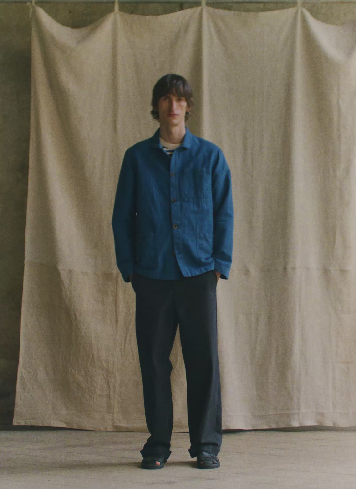 Our pared-back Arlo jacket is crafted from mid-weight organic cotton and linen-blend herringbone, which is garment-dyed for depth of colour. Inspired by workwear styles, with large patch pockets. Can also be layered as a shirt. Part of our Menswear collection.