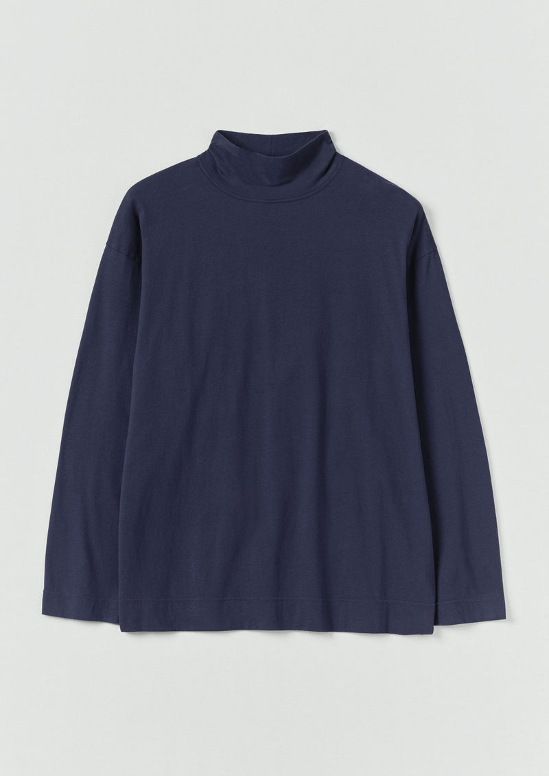 Cotton jersey. Brushed. High neck. Dropped shoulder. Side hem slits.