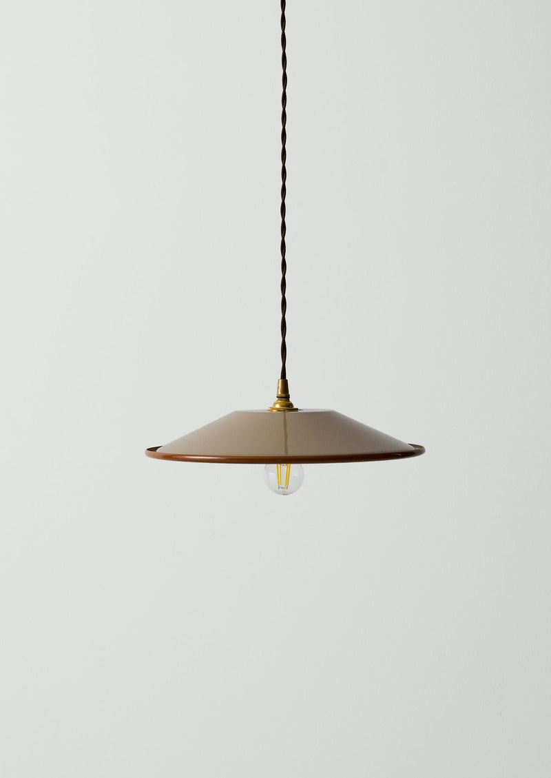 Durable, porcelain-infused enamel shade for indoor light fittings, accented by contrasting colour around the rim. As our enamelware is handmade, there may be small black marks underneath the rim which are created by the tongs and hangers used during the firing process.
