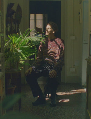 The marbled palette of our wool sweater is inspired by the endpapers of antique books, with natural variations in tone that make each piece unique. Knitted with hand-dyed local wool and hand-framed by artisans supported by Manos del Uruguay, a non-profit founded in 1968 to empower women in rural Uruguay. Shaped to a straight, boxy fit with long sleeves, a subtle mock neck and wide, ribbed trims. Part of our Menswear collection.