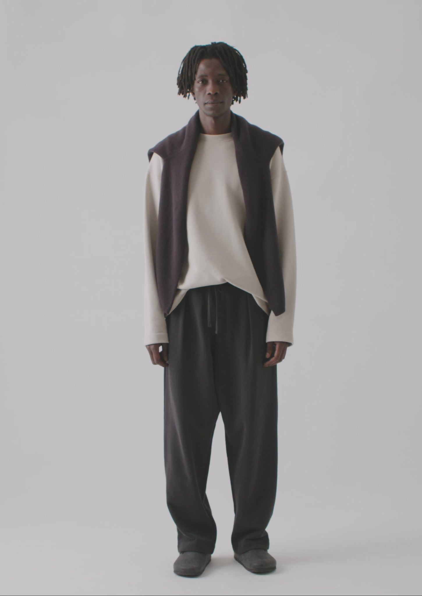Organic cotton loopback jersey. Relaxed fit. Self fabric crew neckline.