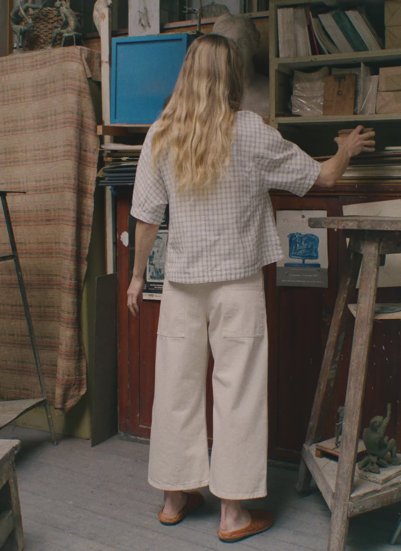 Our wide leg trousers are made from regenerative denim grown in Türkiye. Our regenerative cotton is grown in Türkiye without harmful pesticides, improving soil health and farmer well-being. This method supports sustainable, high-quality denim production with minimal environmental impact. Sitting on the hip, this weighty denim defines the relaxed silhouette, complemented by slanted side pockets. Large patch pockets are inspired by workwear styles. Finished with twin stitching.