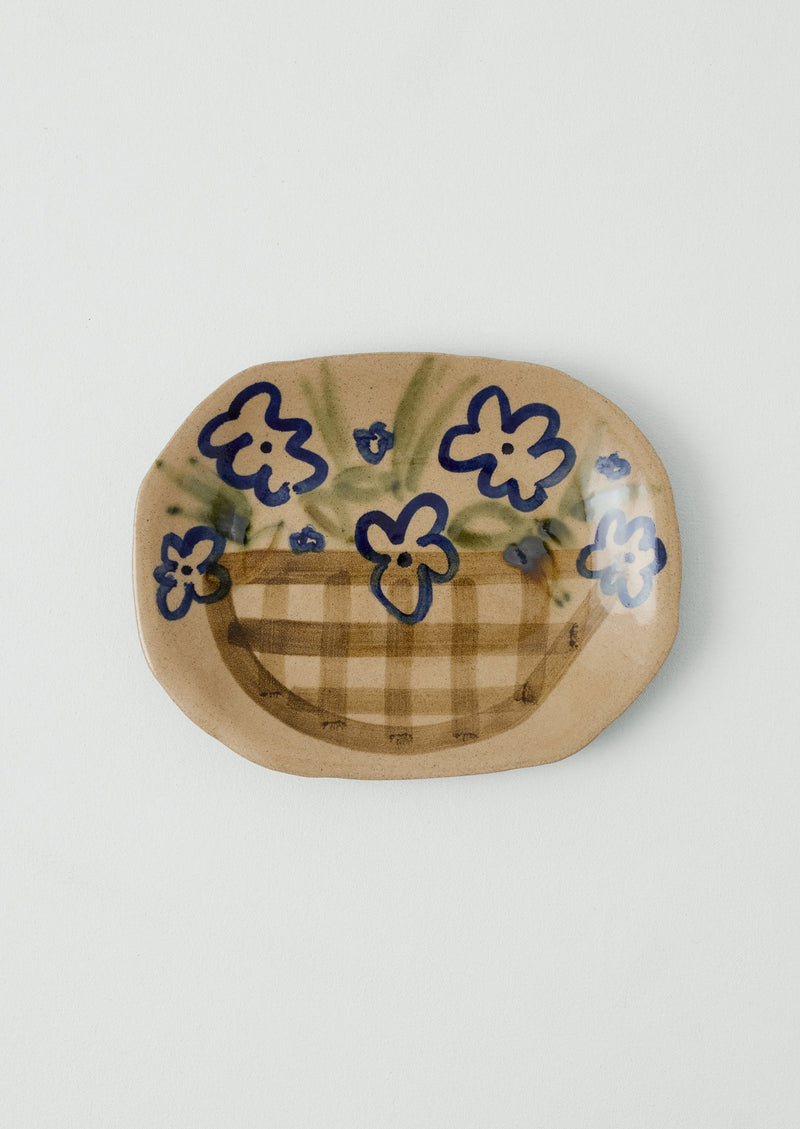 Press-moulded platter by Sophie Fletcher of Zosia Ceramics, crafted in Cambridge. Patterned with expressive cobalt and oxide flowers, each piece is a unique reflection of fluid, painterly gestures.